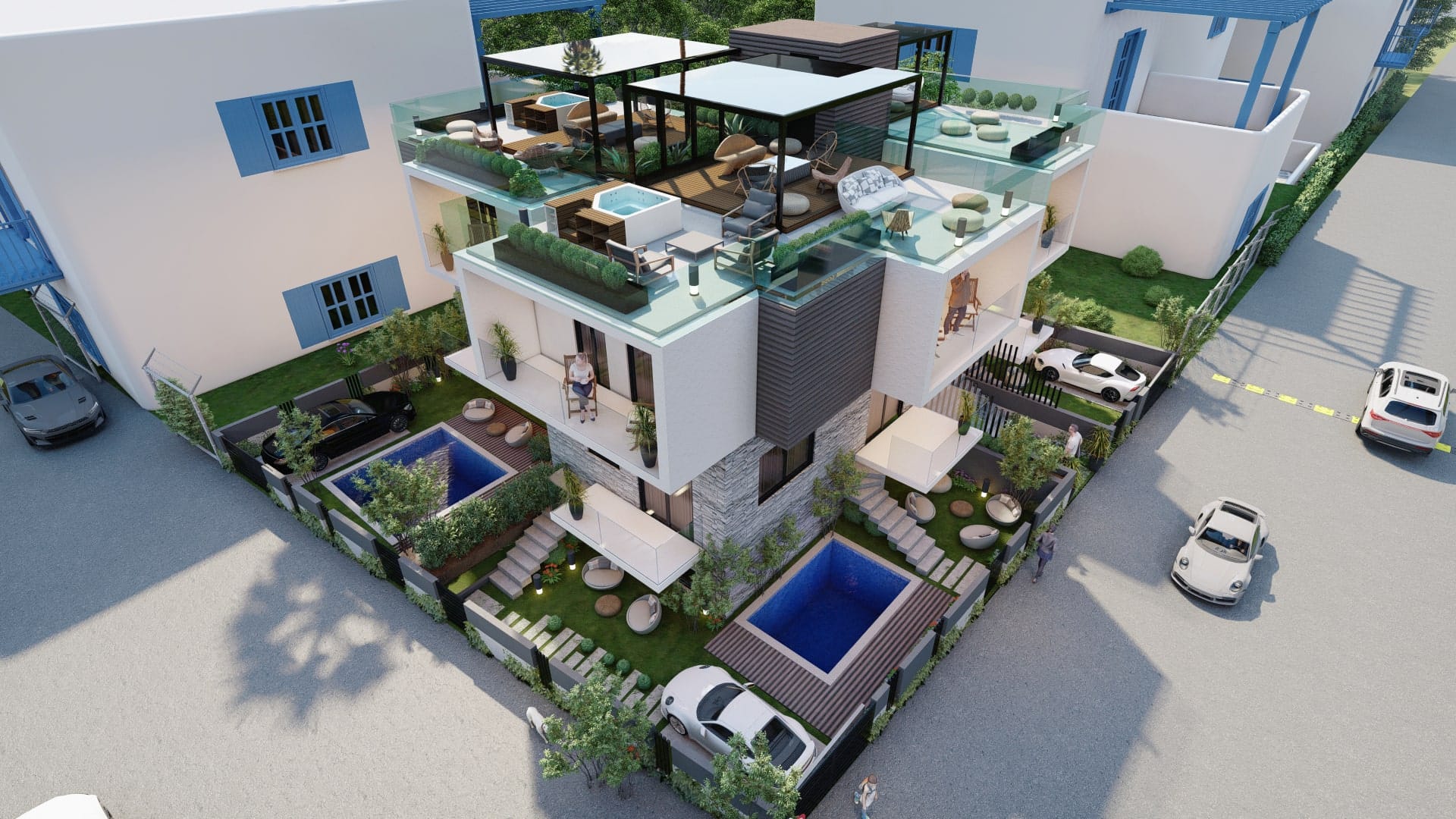 Choosing the Dikastirion Gardens Residence means investing in a lifestyle defined by superior comfort and modern amenities. The development ensures exceptional quality with its A+ Energy efficient construction, leading to lower operating costs and a reduced environmental footprint. Residents of the Duplex apartments will enjoy the unique privilege of private outdoor living, complete with their own gardens and pools. Simultaneously, the Simplex units provide exclusive access to private roof terraces, perfect for relaxation or entertaining. The thoughtful design and limited number of units guarantee a quiet, upscale, and desirable residential atmosphere.