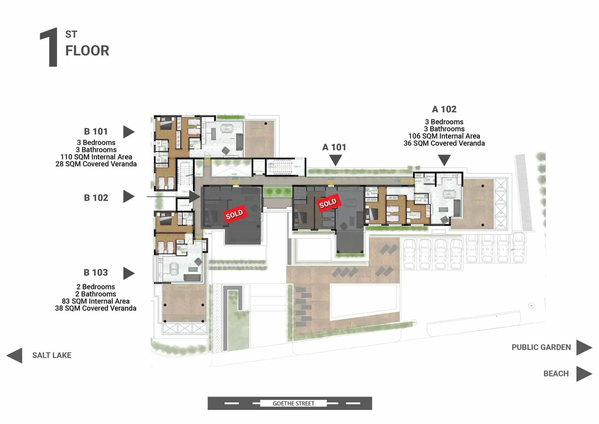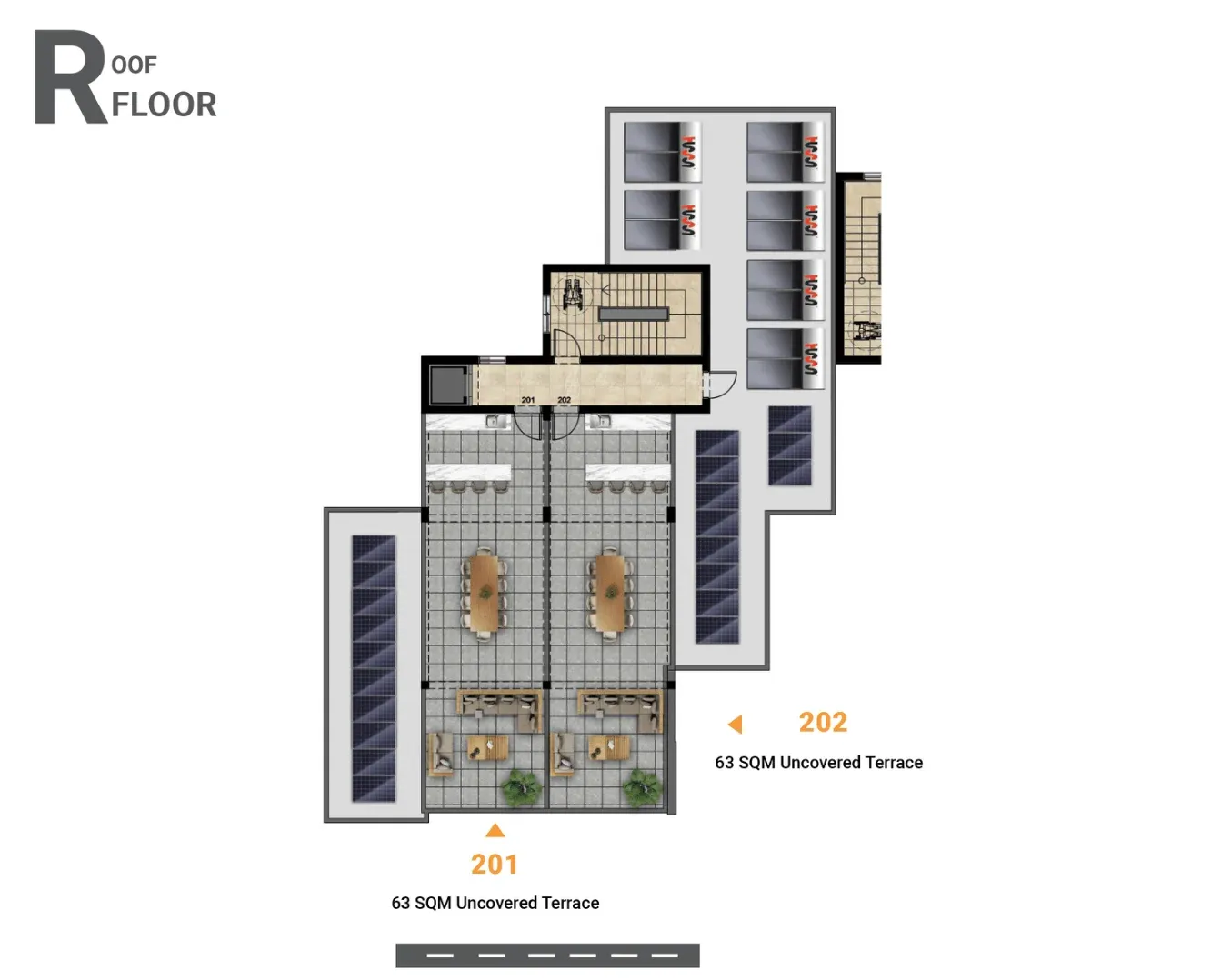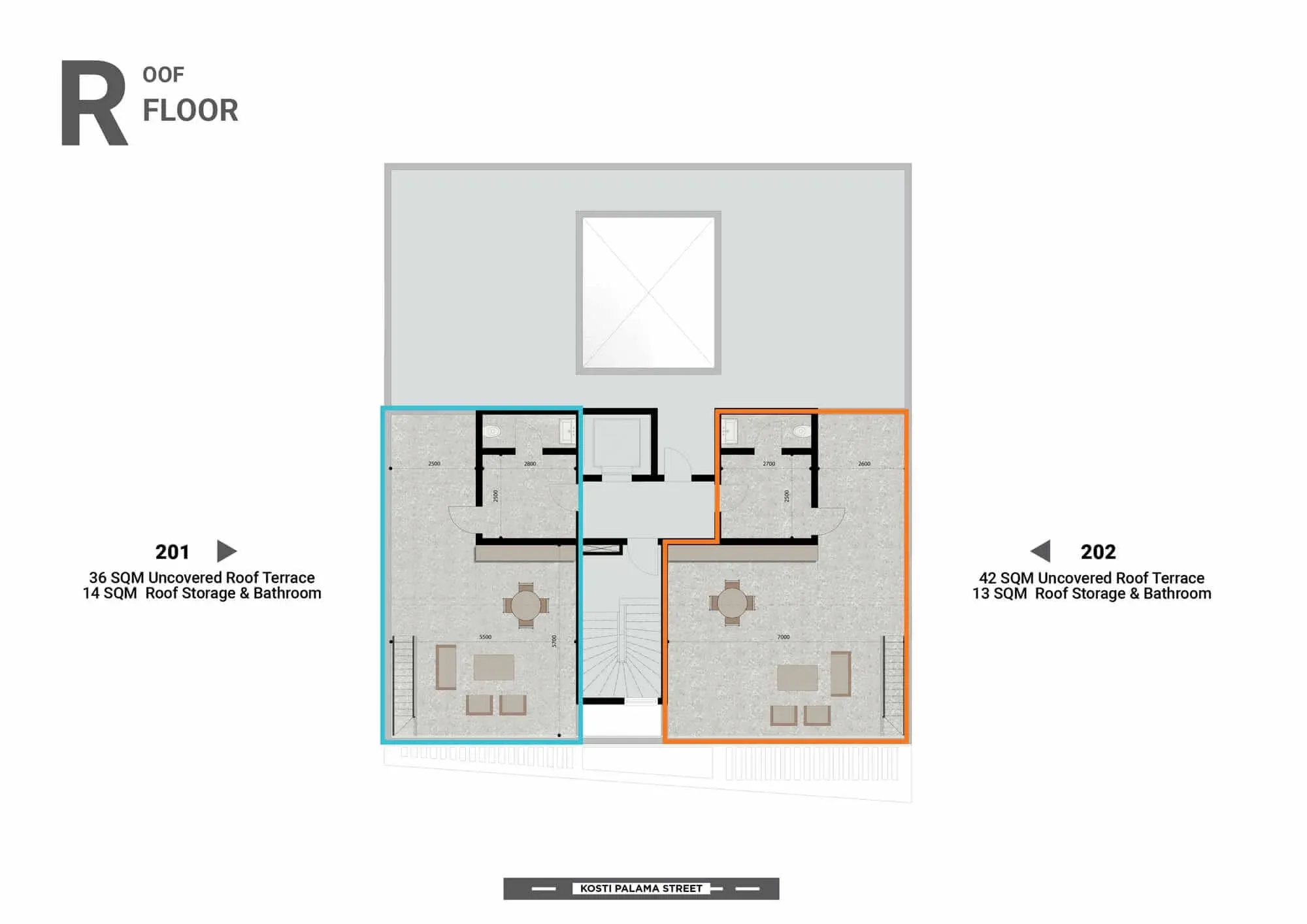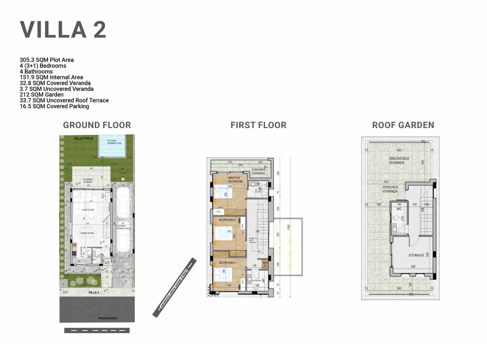 Unit | Floor | Type | Bedrooms | Bathrooms | Parking | Internal Area (m²) | Covered Veranda (m²) | Roof Terrace (m²) | Total Area (m²) | Price | Status | Action |