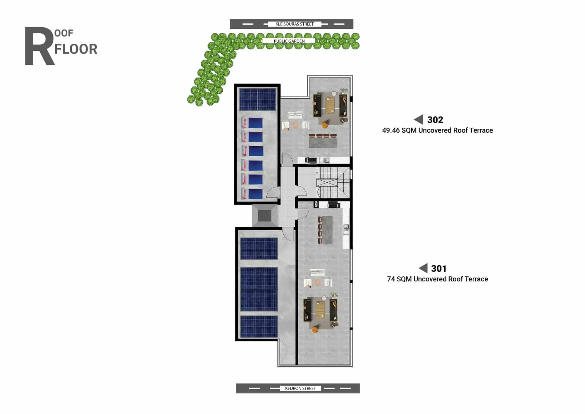 Each penthouse is designed with contemporary Cyprus architecture, featuring expansive roof terraces with panoramic views of Limassol’s skyline. Interiors offer floor-to-ceiling windows, premium materials, and spacious layouts, making them ideal for permanent residence, international investors seeking Golden Visa property in Cyprus, or short-term luxury rentals.