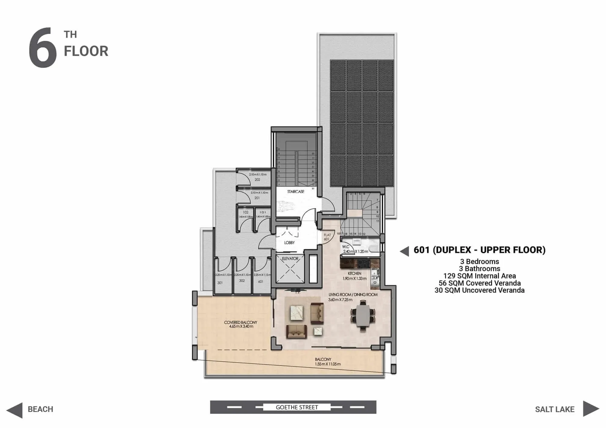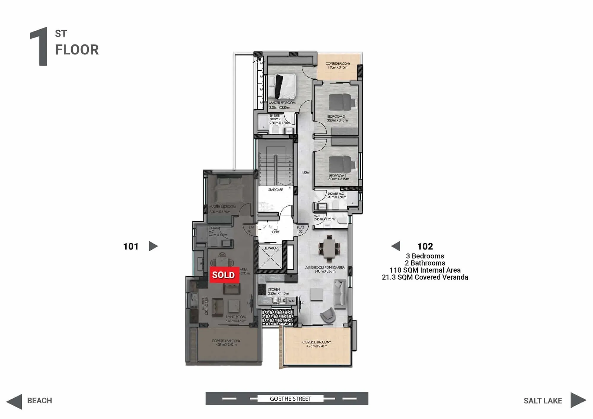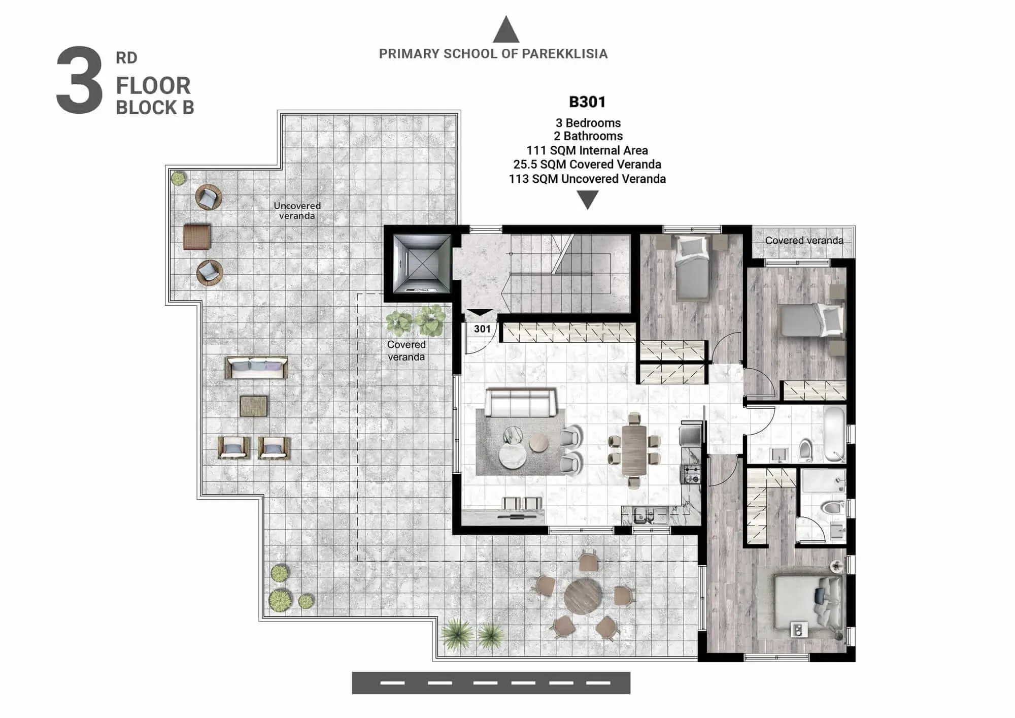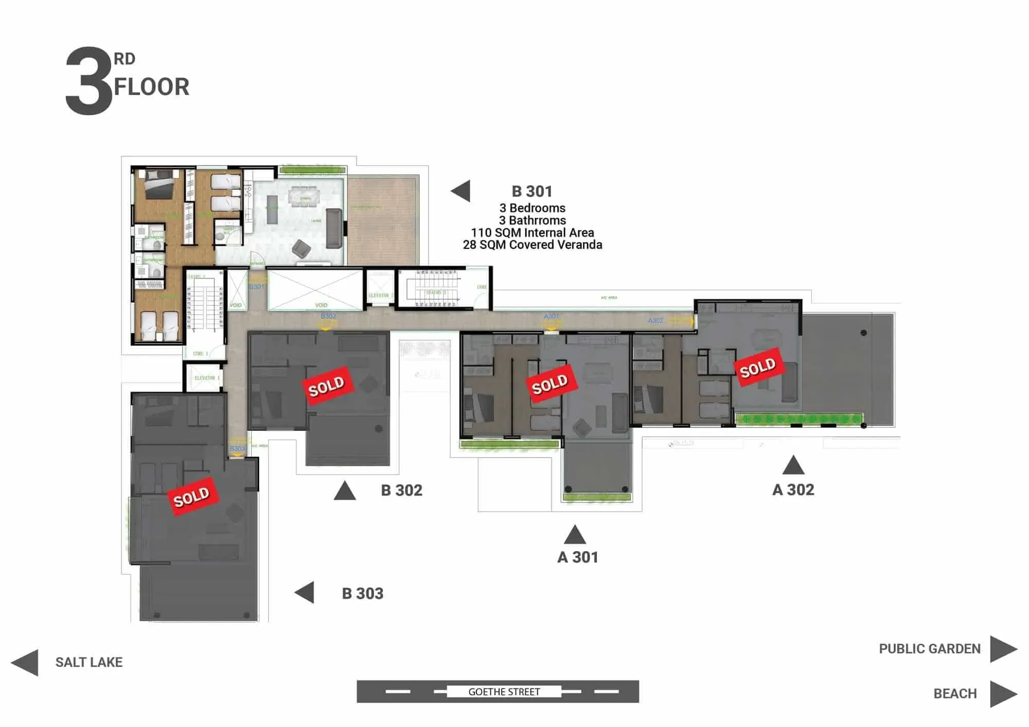 Unit 301 | 3rd Floor | Penthouse | 3 | 3 | Covered | 89 | 12 | 21.7 | 133.05 | €375,000 | AVAILABLE | Inquire → |