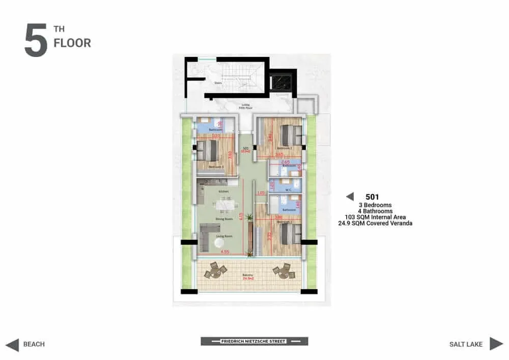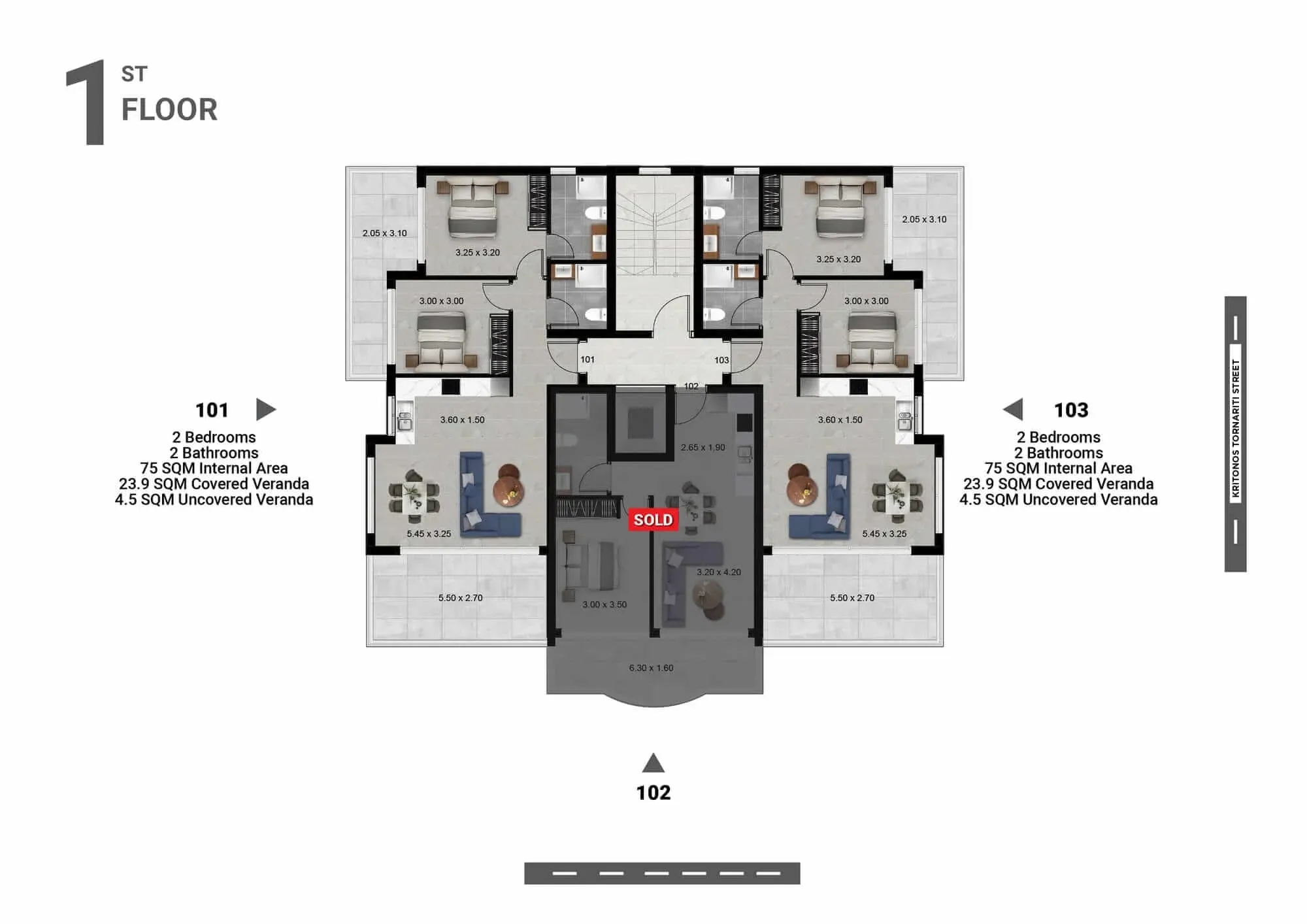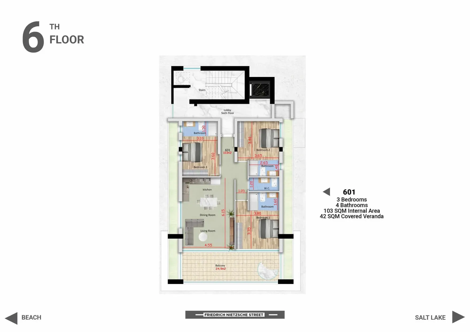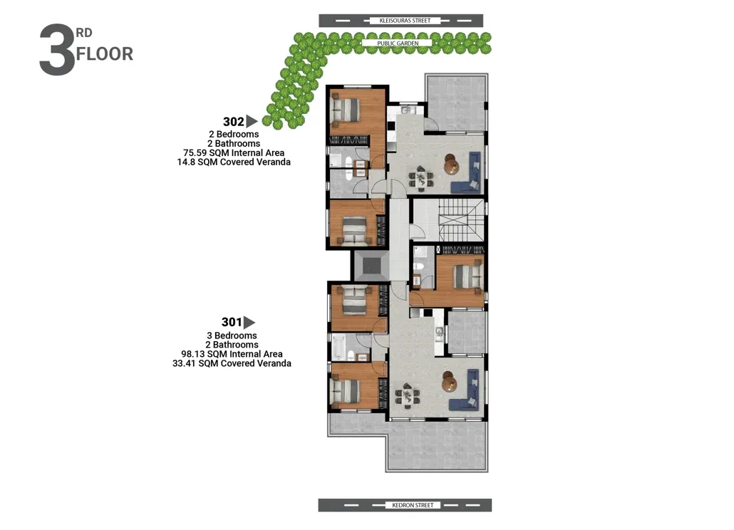 Unit 301 | 3rd Floor | Penthouse | 3 | 3 | Covered | 89 | 12 | 21.7 | 133.05 | €375,000 | AVAILABLE | Inquire → |