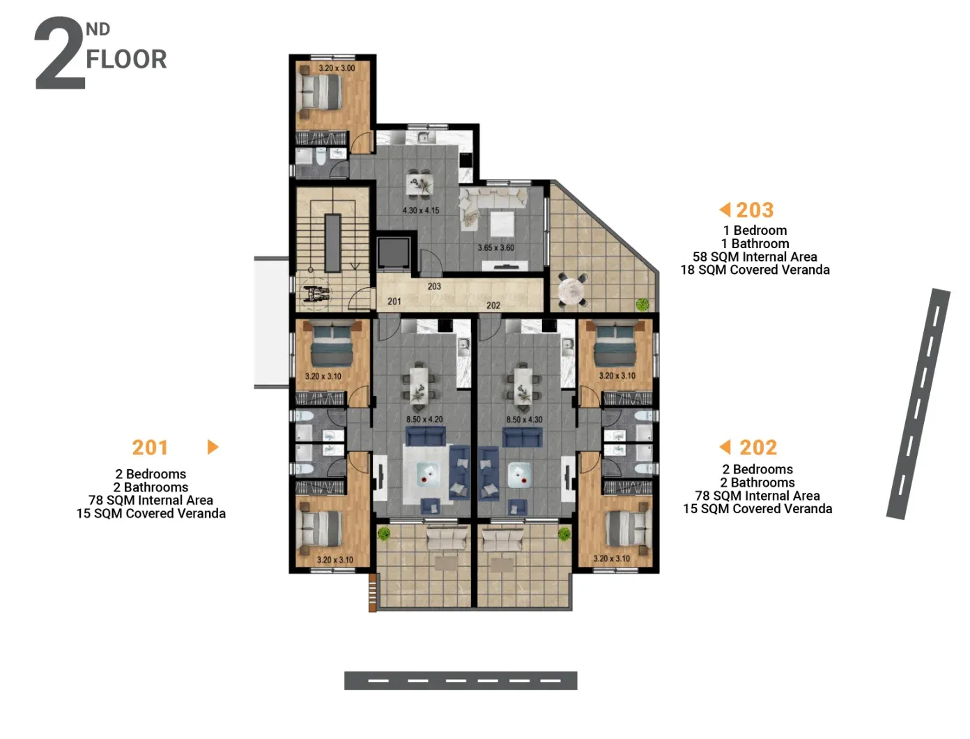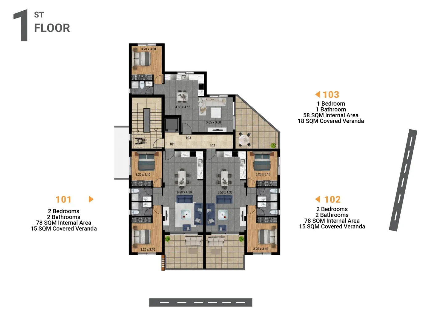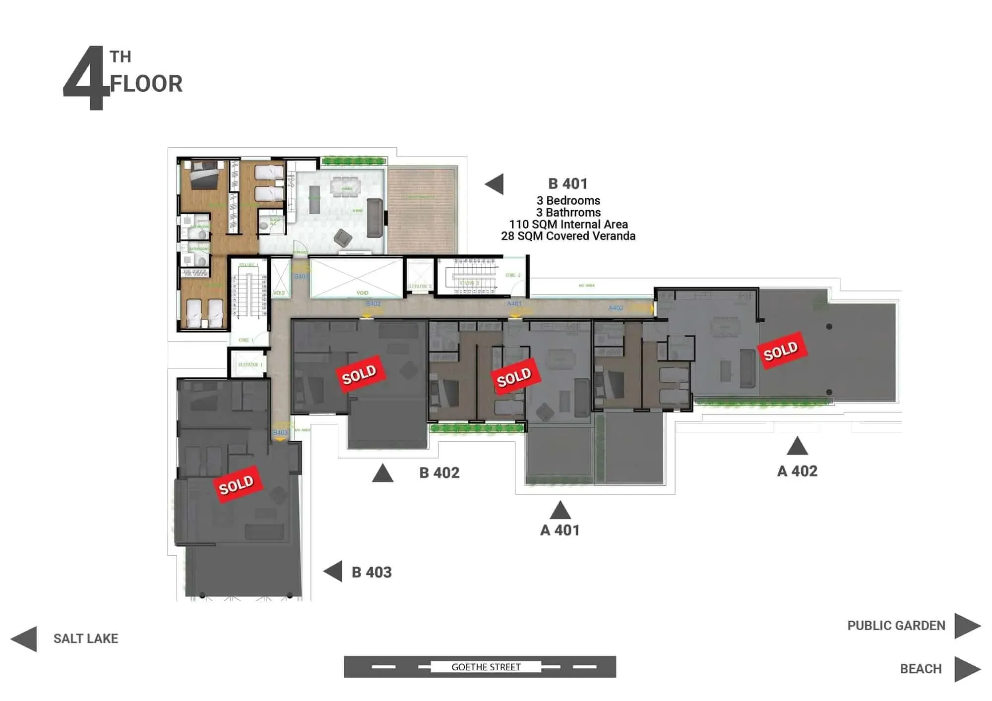 Unit 302 | 3rd Floor | Penthouse | 4 | 4 | Covered | 106.9 | 18 | 41.7 | 176.95 | €425,000 | AVAILABLE | Inquire → |
