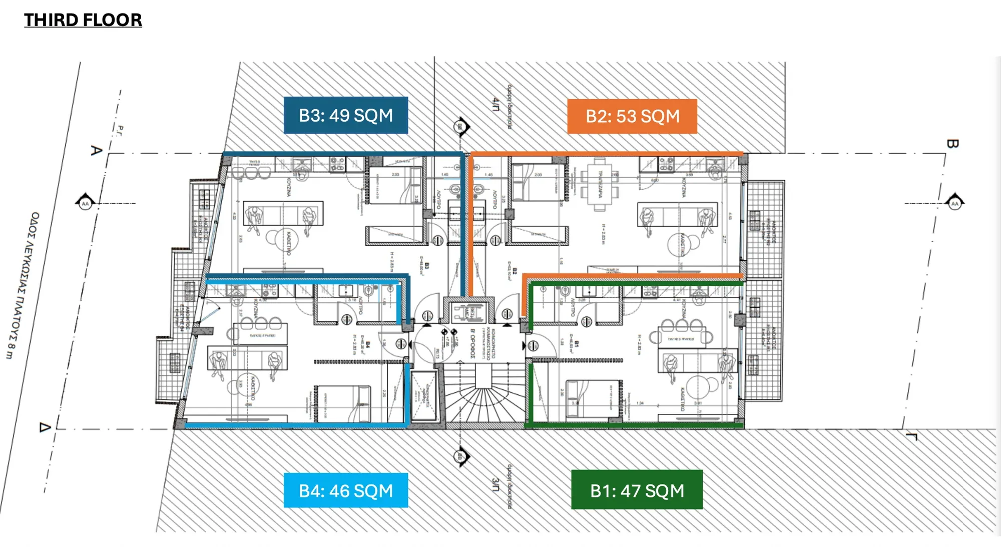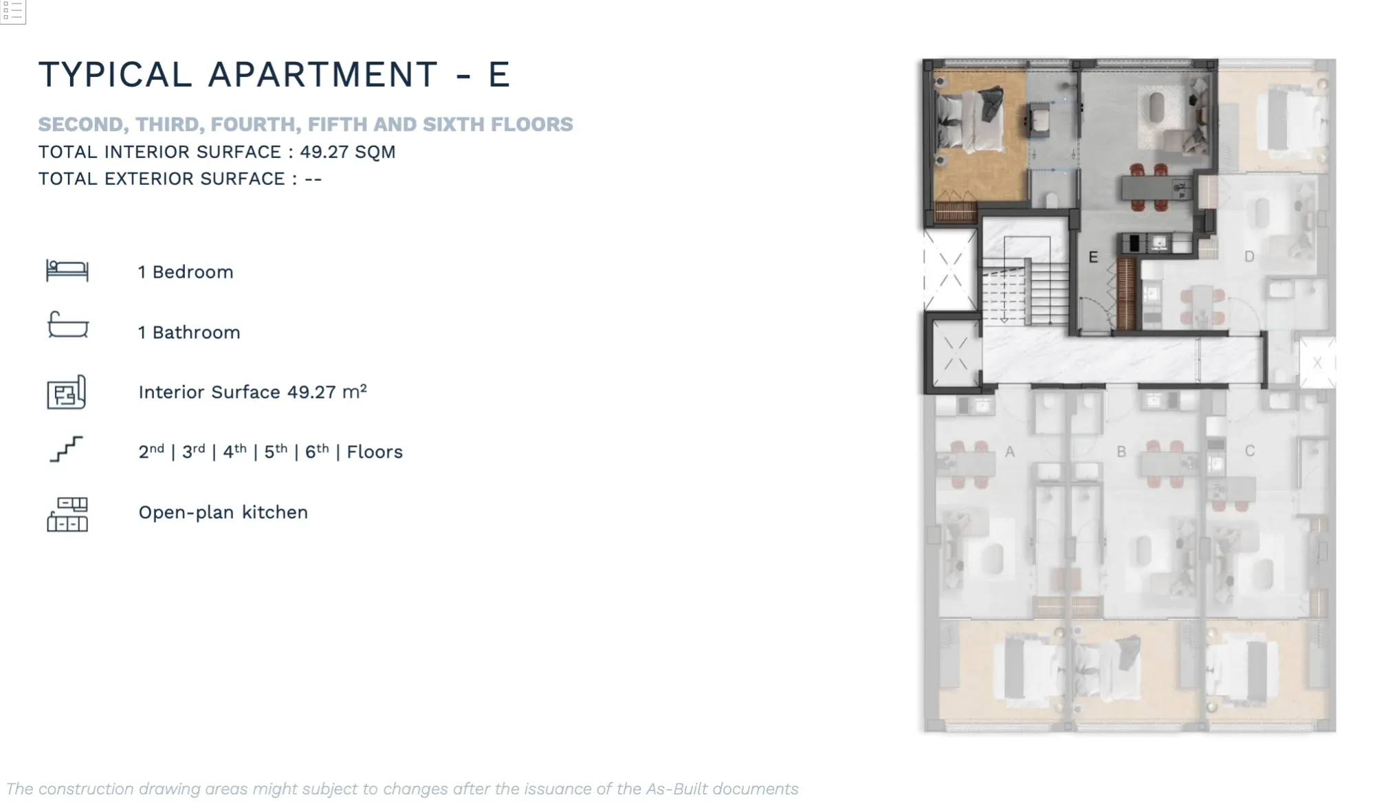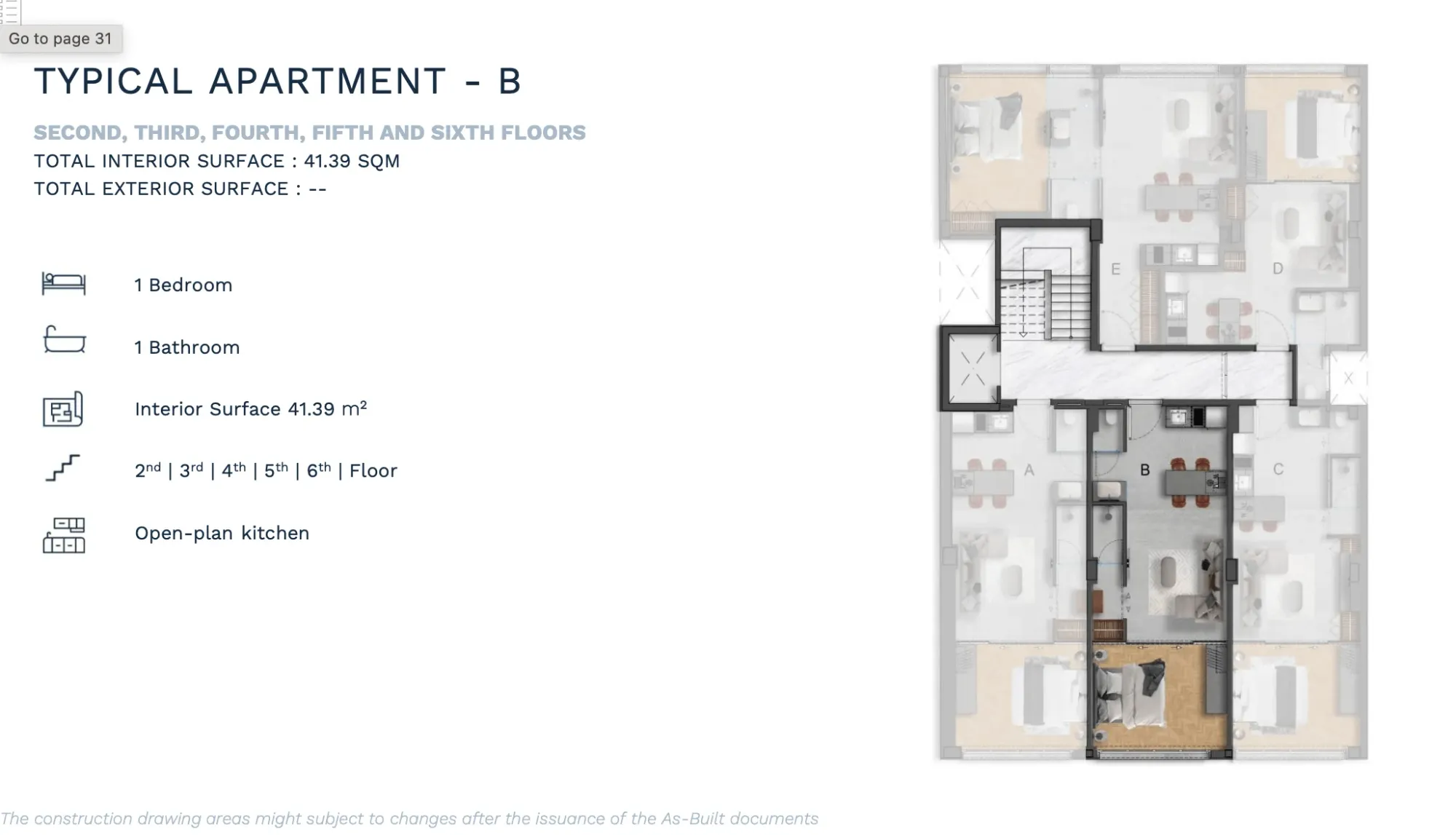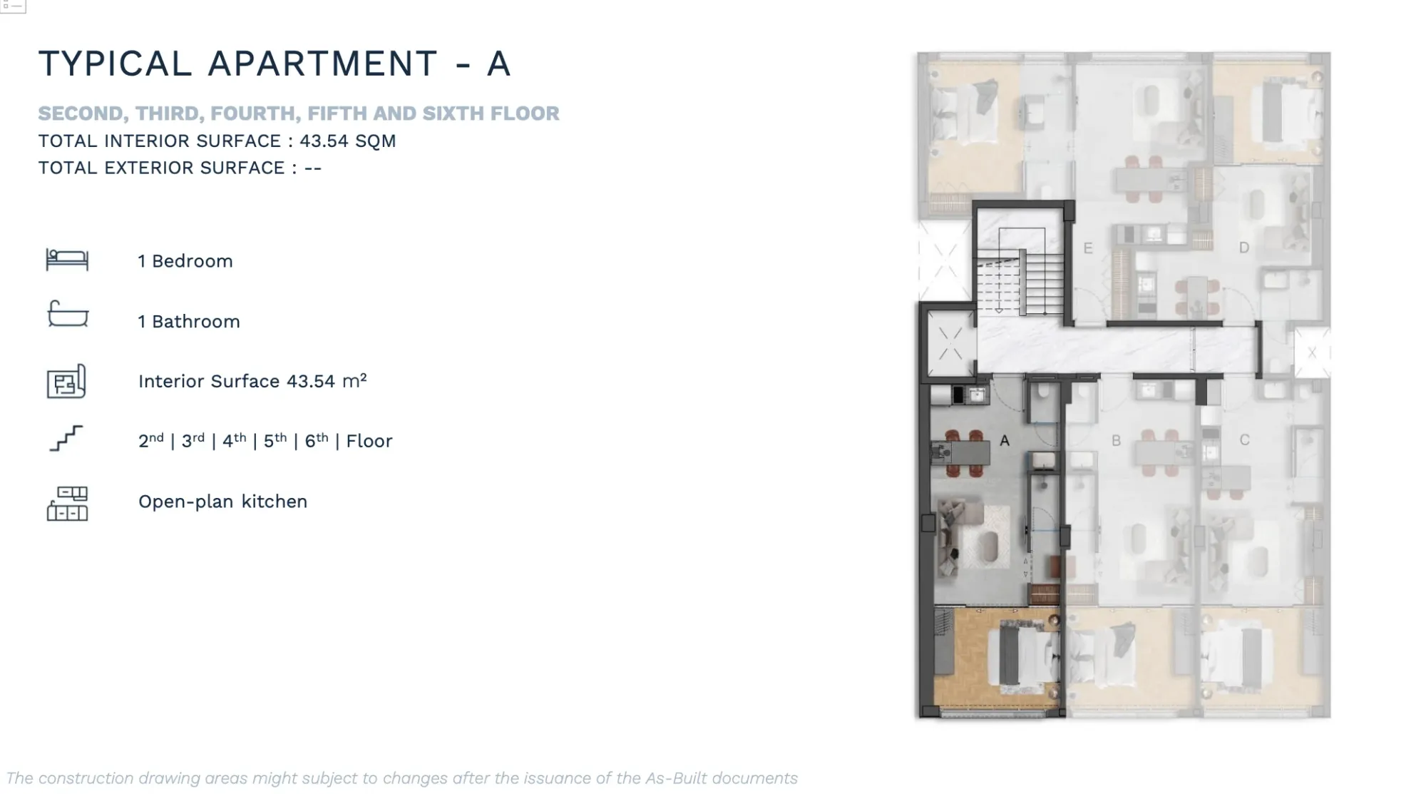 APARTMENT B | 2nd | 1 Bedroom Luxury | 53.12 | - | 53.12 | €380,000 | AVAILABLE | Enquire → |