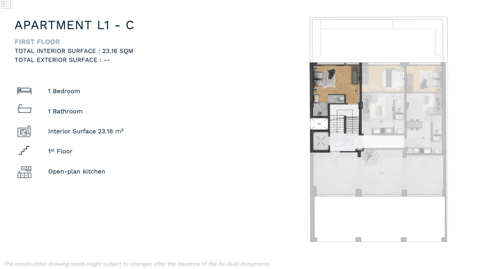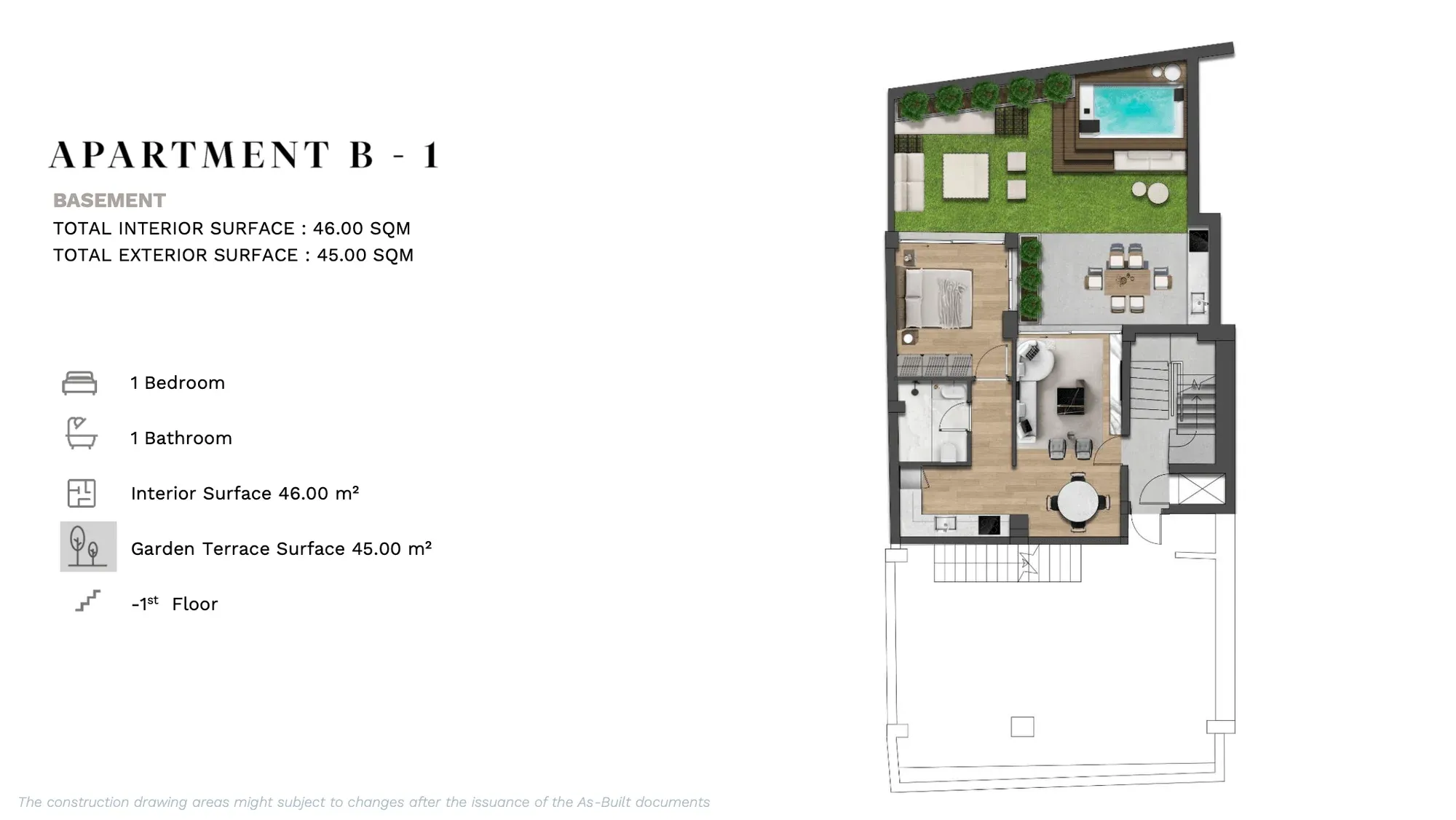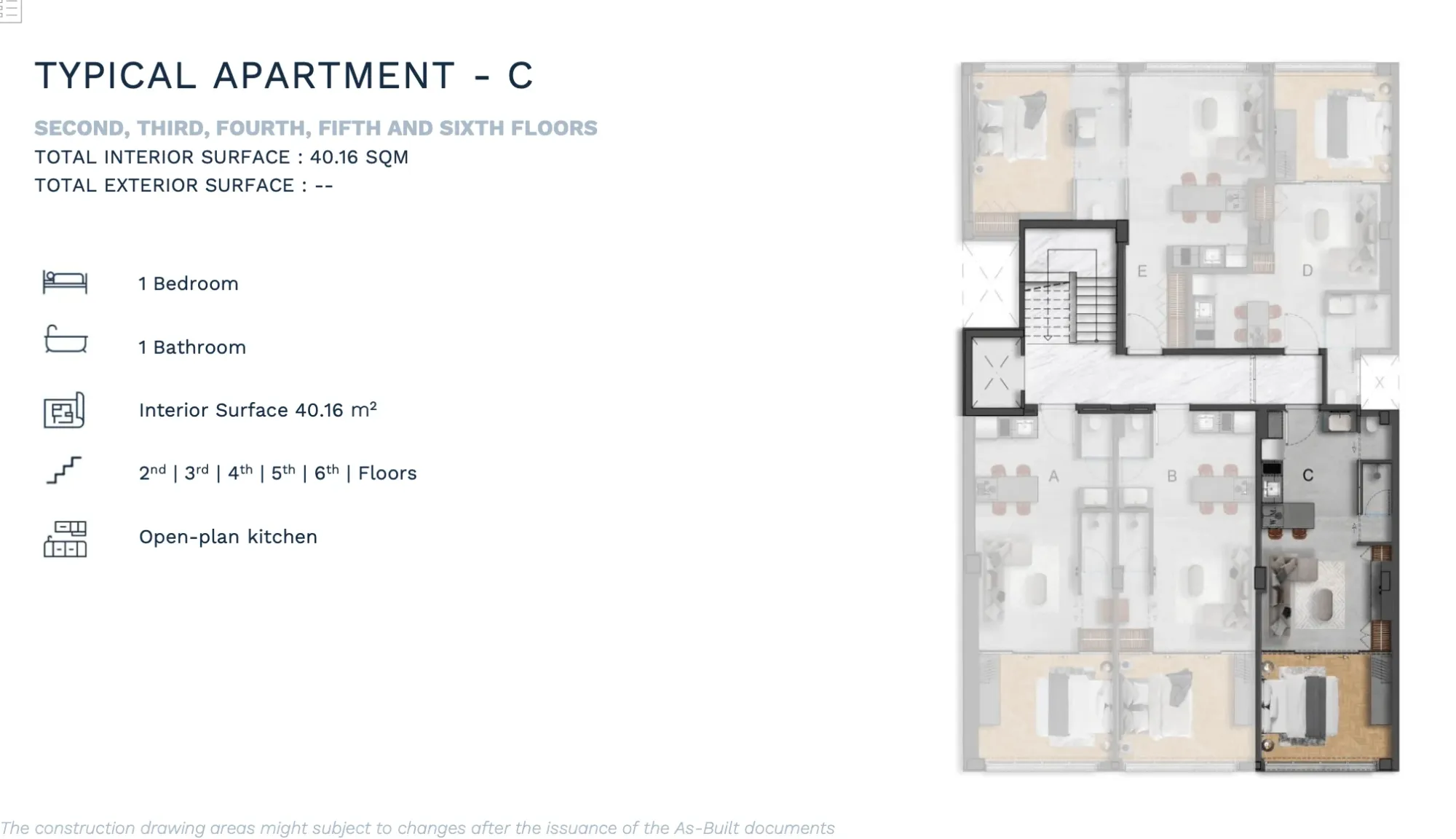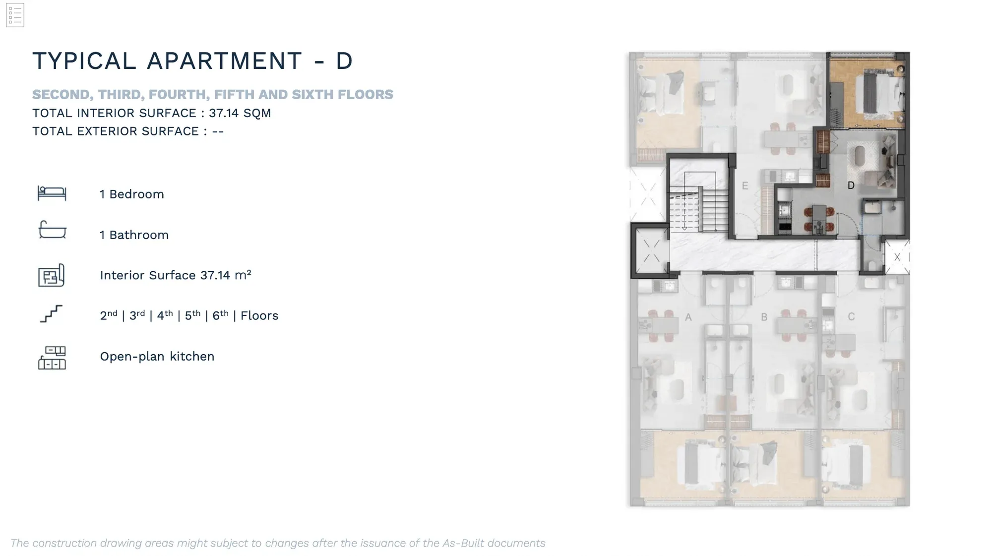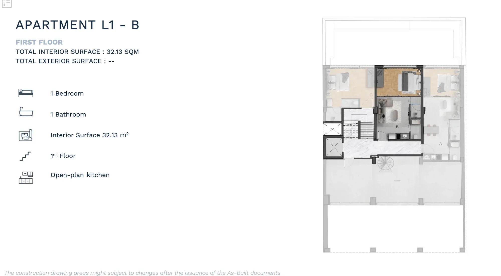 APARTMENT B | 2nd | 1 Bedroom Luxury | 53.12 | - | 53.12 | €380,000 | AVAILABLE | Enquire → |