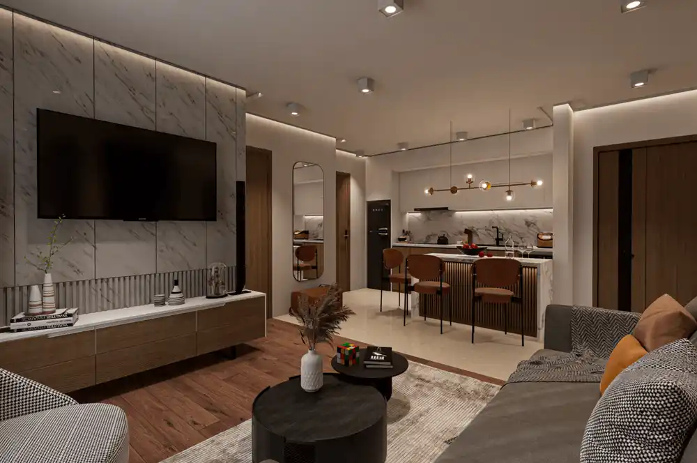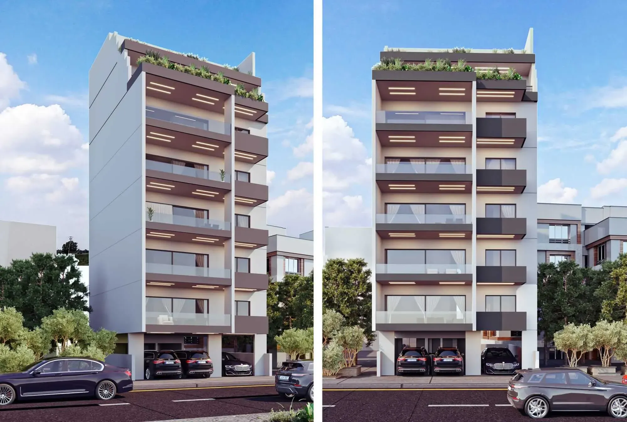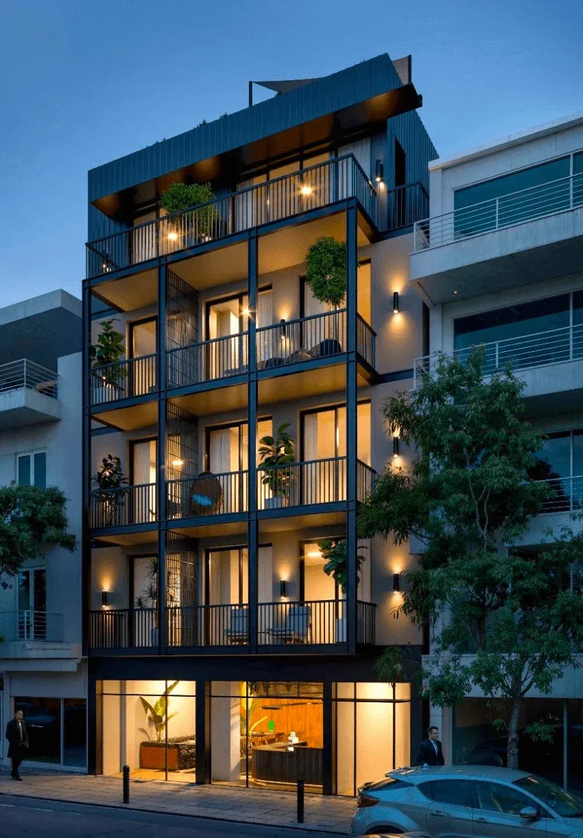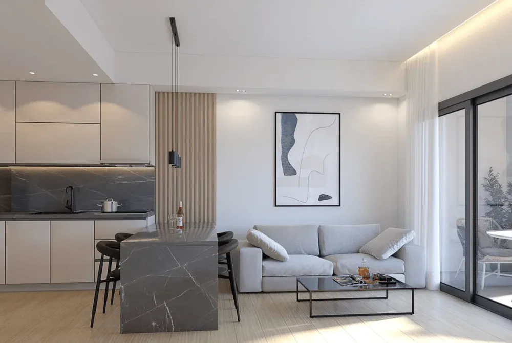 The apartments in Glyfada feature modern architectural design with high-end finishes throughout, including marble bathrooms, contemporary kitchens, and spacious living areas. Each residence is designed with open-plan layouts that maximize space and the flow of natural light.