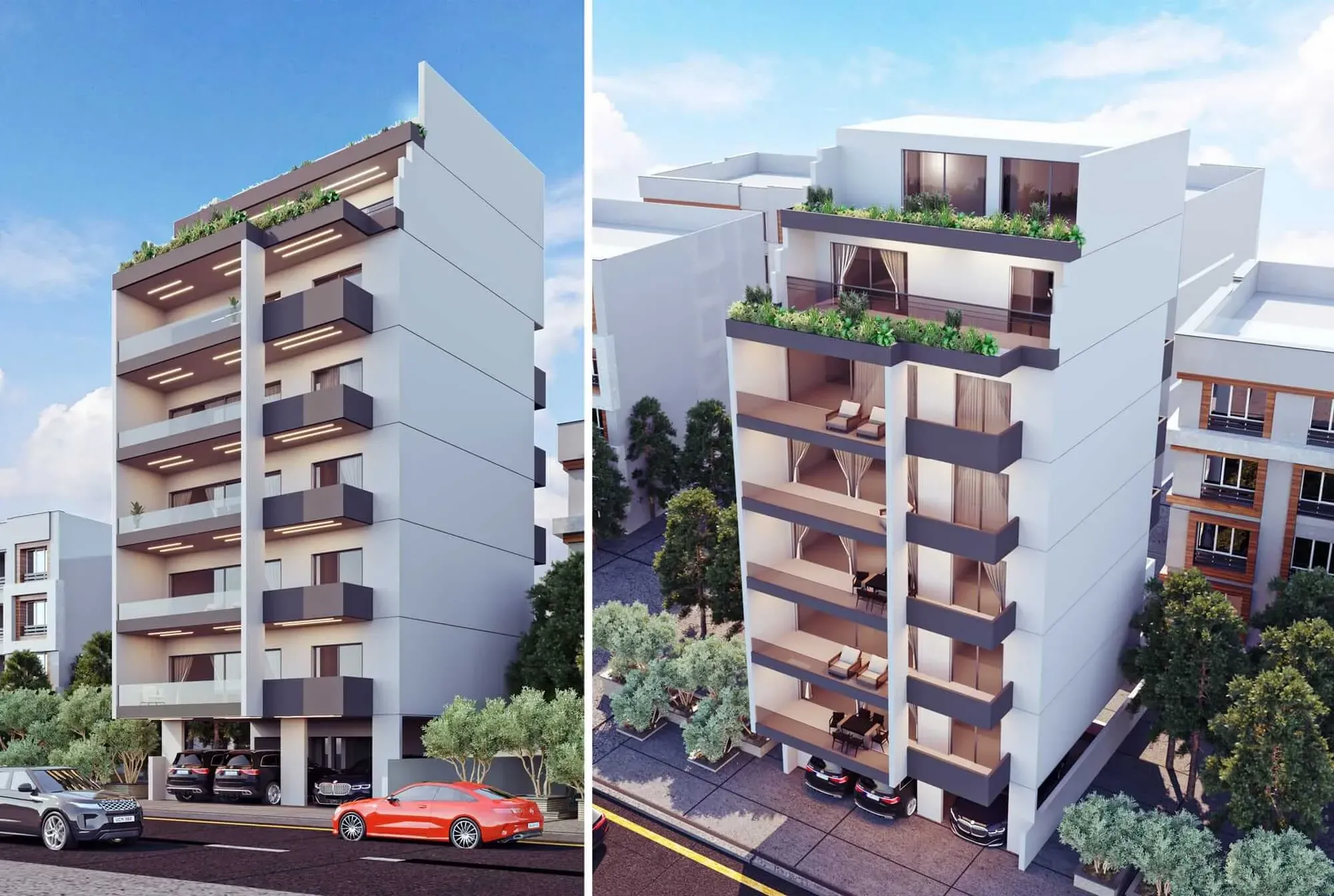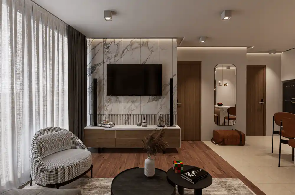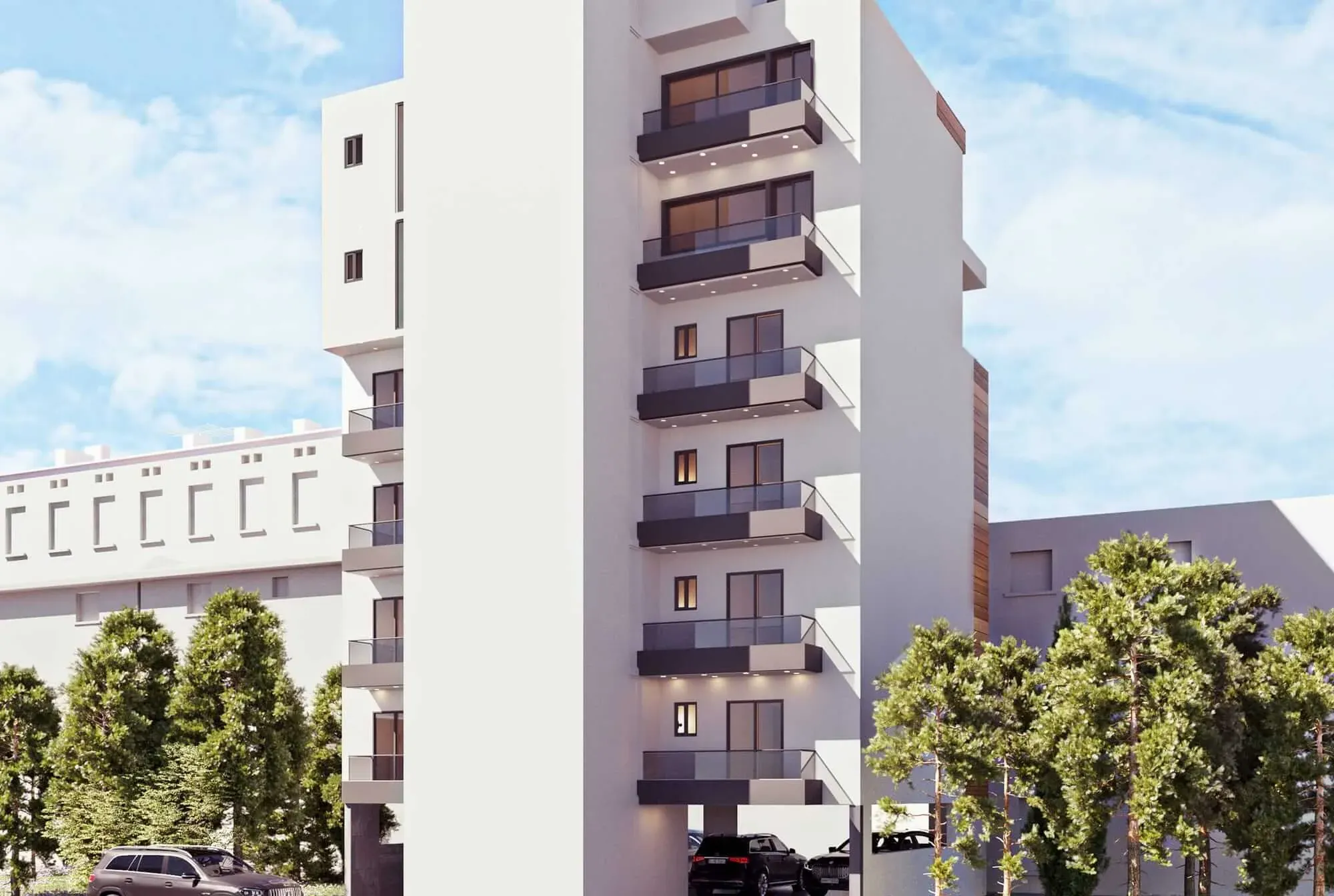 The apartments in Glyfada feature modern architectural design with high-end finishes throughout, including marble bathrooms, contemporary kitchens, and spacious living areas. Each residence is designed with open-plan layouts that maximize space and the flow of natural light.