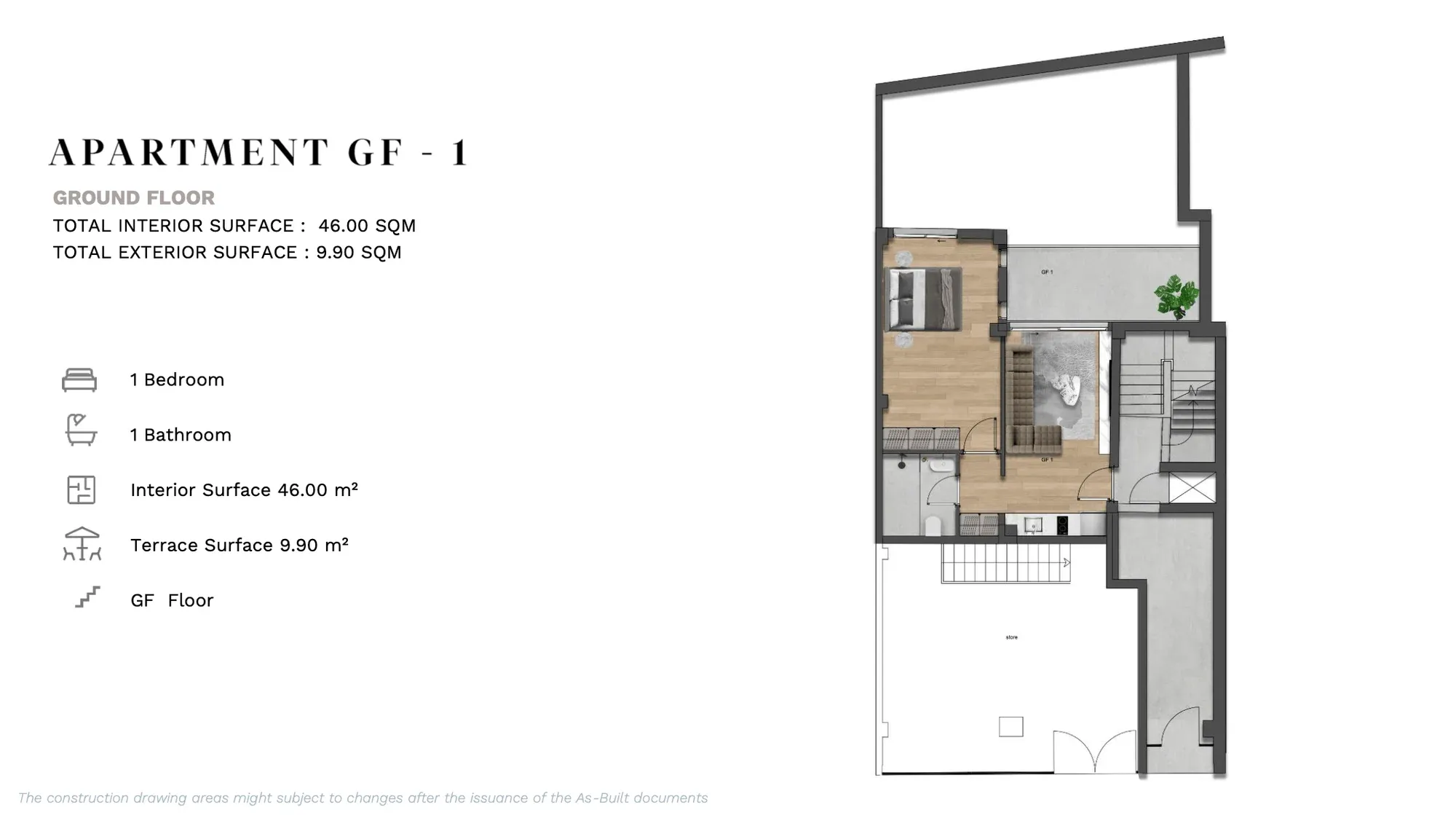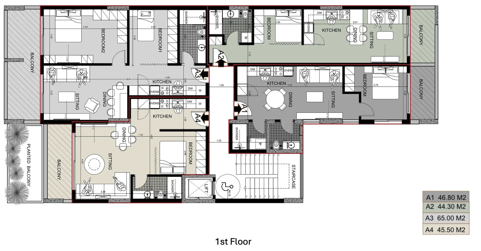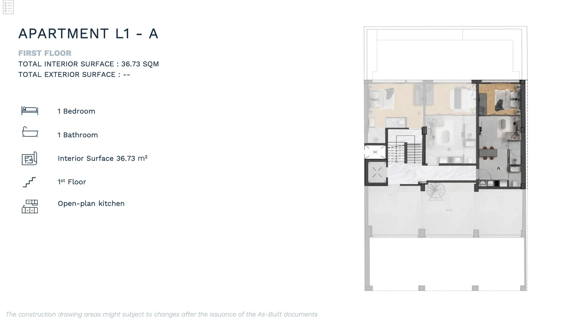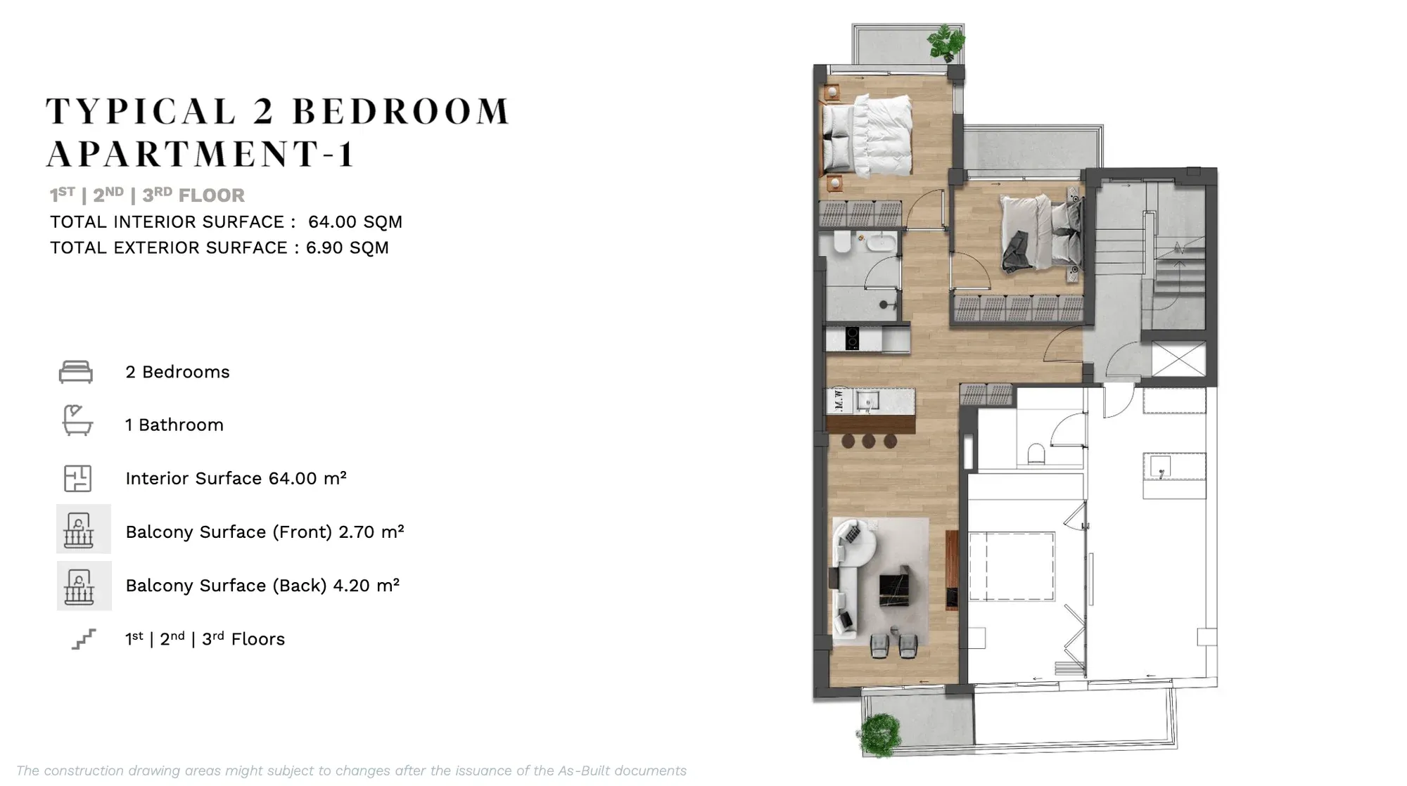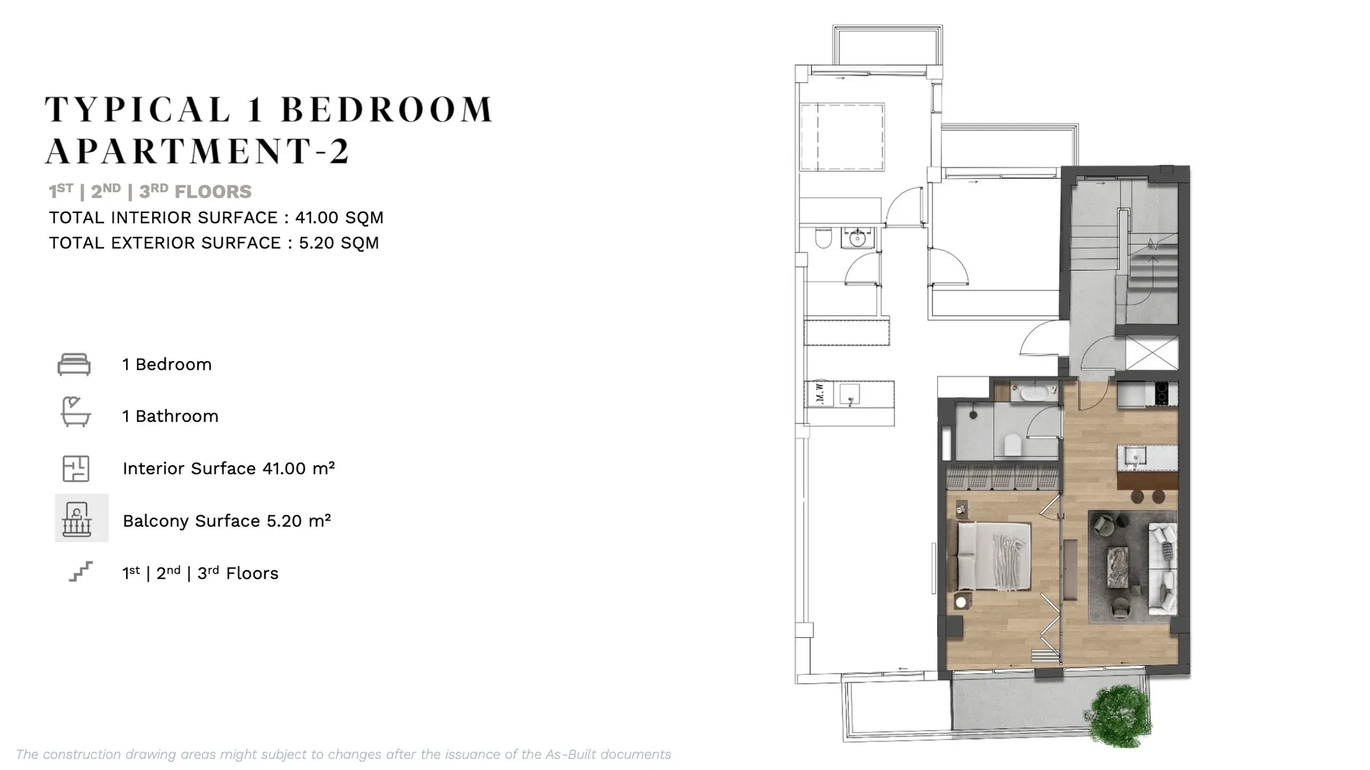 APARTMENT A | 2nd | 1 Bedroom Luxury | 53.12 | 13.00 | 66.12 | €380,000 | AVAILABLE | Enquire → |