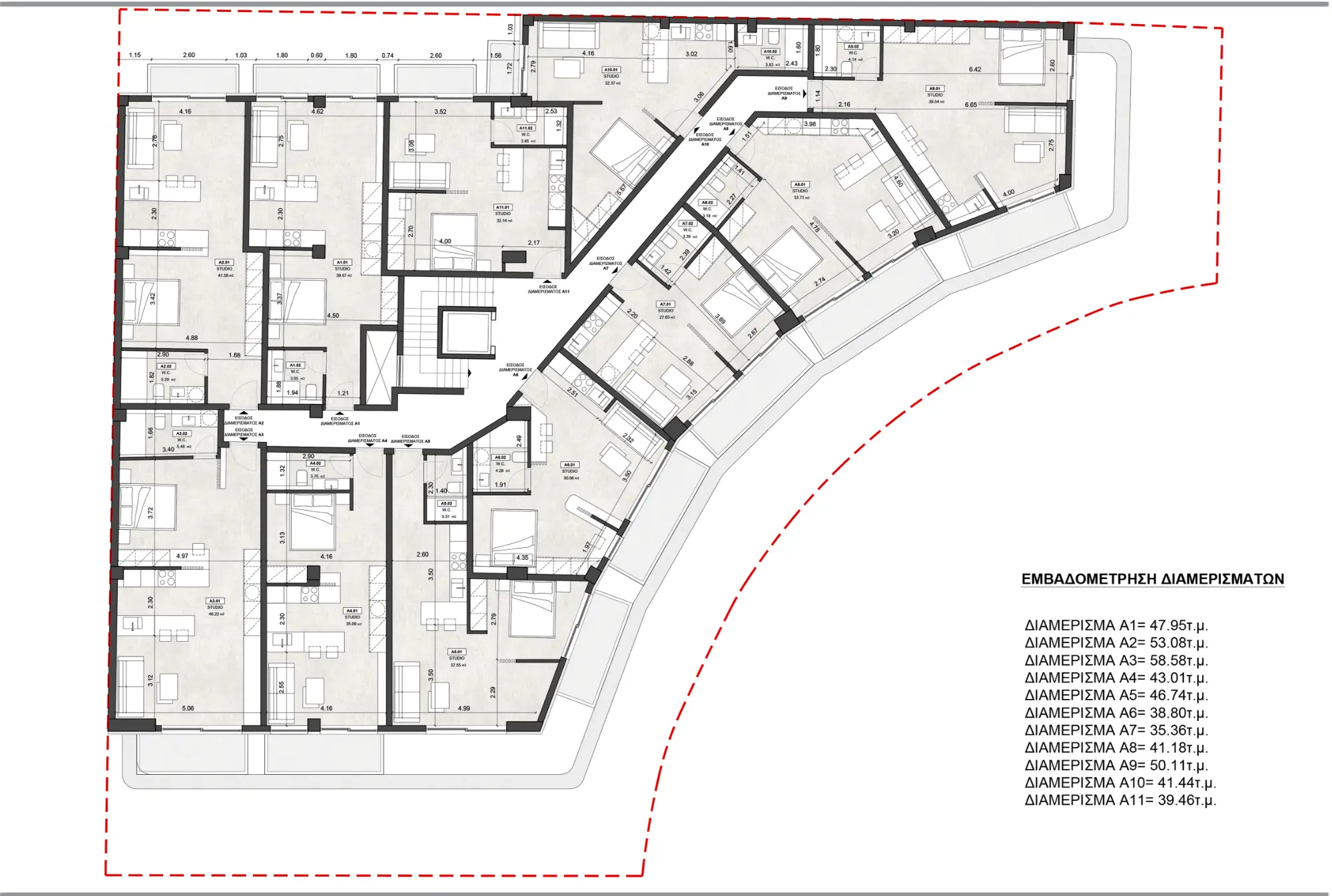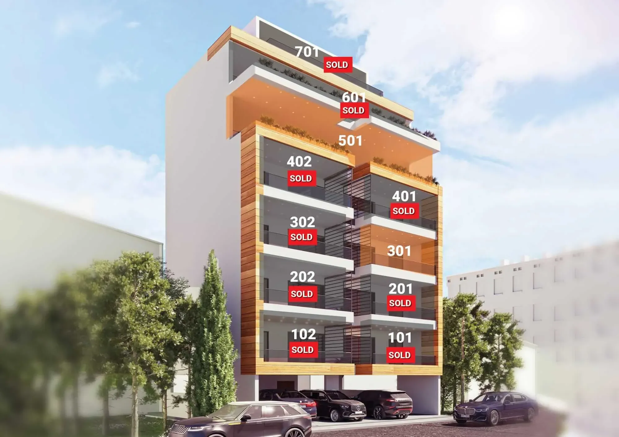 Unit | Floor | Type | Interior (m²) | Balcony (m²) | Total (m²) | Price | Status | Action |